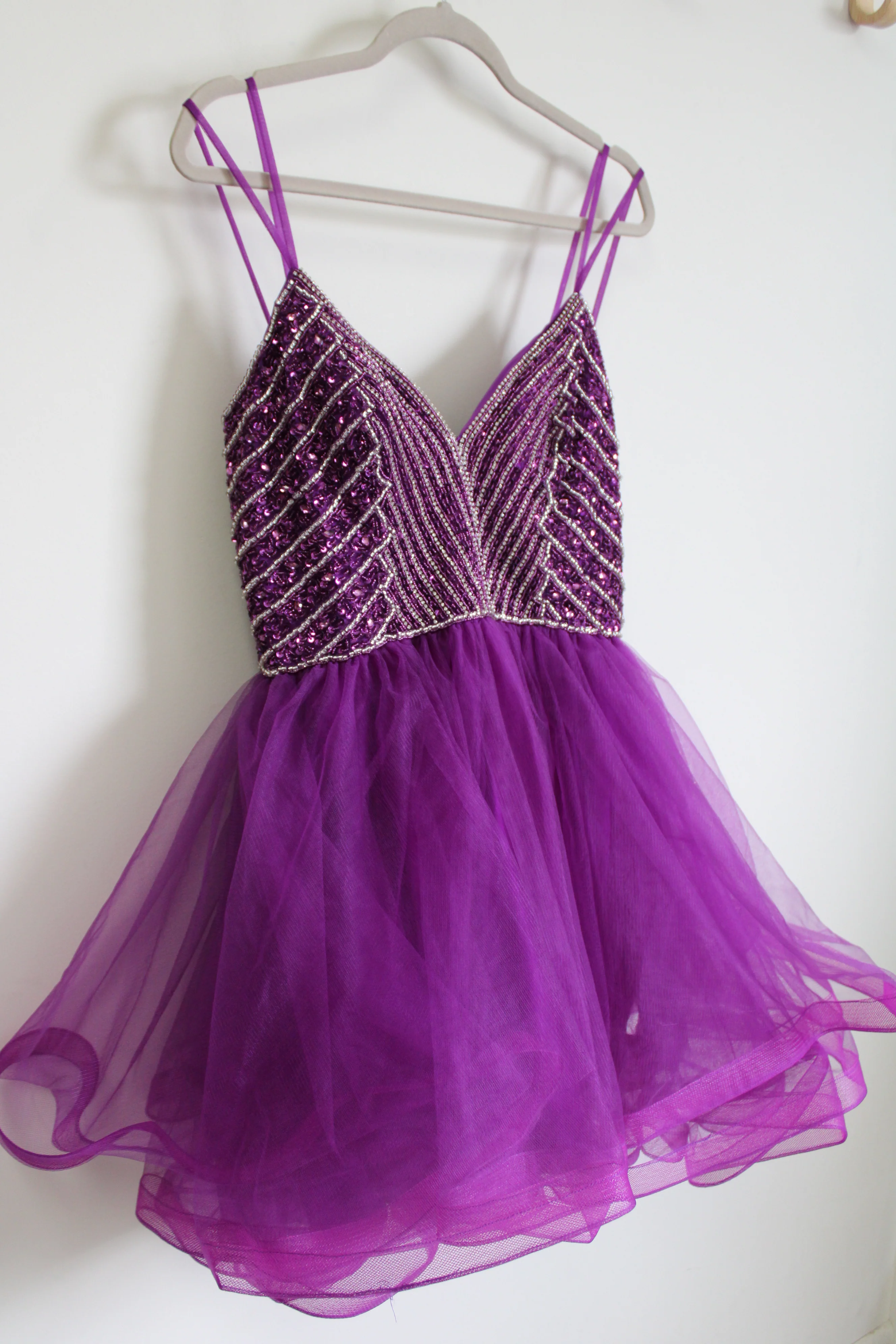 -70%NEW Lucci Lu Purple Tulle Beaded Strappy 4250 Dress | 10—
